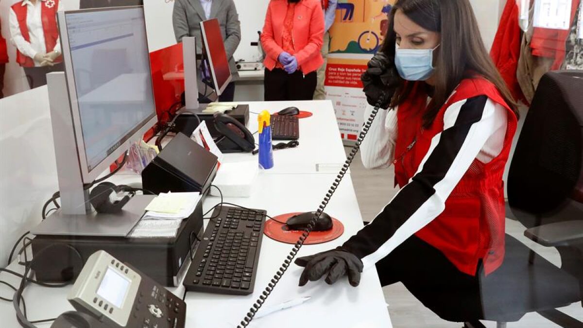 La Reina Letizia, ataviada con el chaleco de Cruz Roja, guantes y mascarilla ha visitado una de las sedes de Madrid donde se atienden a personas necesitadas, una situación, sin duda, agraviada durante la pandemia del coronavirus.