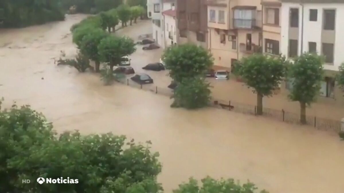 La fuertes lluvias que están cayendo desde primeras horas de la tarde están causando importantes daños materiales en poblaciones como Tafalla, que en estos momentos se encuentra casi incomunicada, al estar cortadas prácticamente todos los accesos a la misma.