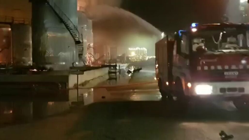 Las primeras imágenes del interior de la planta petroquímica muestran unas instalaciones completamente devastadas por el fuego.