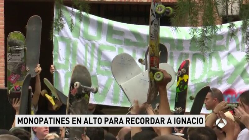 A continuación, un grupo de jóvenes de la localidad ha levantado una veintena de monopatines en recuerdo de una de las aficiones favoritas de Ignacio. "Desbordamos esta plaza de respeto y emoción a flor de piel. De profundo dolor y tristeza", ha destacado el regidor, quien ha subrayado que la "dignidad y el orgullo" eran otros de los principios de Ignacio Echeverría, del que ha valorado la "inmensa lección de generosidad, de servicio, de humanidad y de valor" que ha dado "frente al terror".
