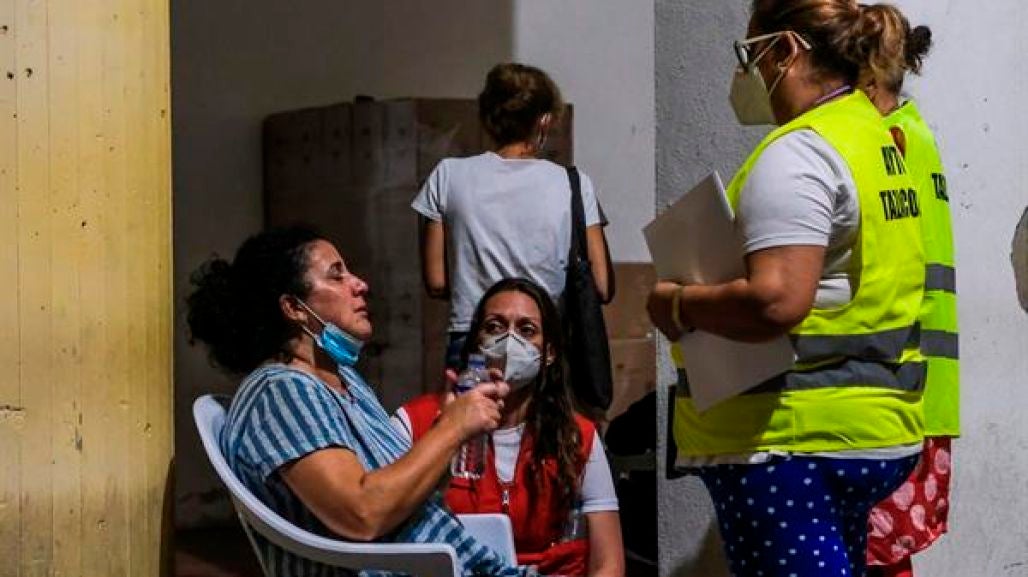 En el Polideportivo de Tazacorte y en el de Los Llanos, toman nota de los datos de las personas desalojadas. Se registra donde viven y si tienen algún domicilio en el que dormir o pueden quedarse con familiares o amigos, en caso negativo se les busca un hotel. Confiando en que la lava se desvíe de este camino y este medio centenar de casas no se vean afectadas. Ahora la colada sigue extendiéndose a lo ancho y avanza en dirección al mar.