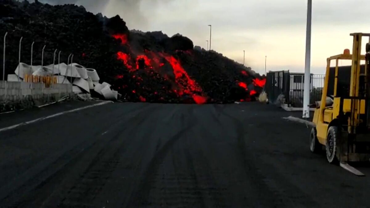 La lava del volcán de La Palma arrasa el polígono industrial de Los Llanos de Aridane