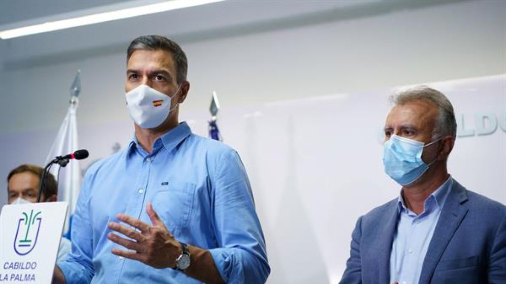Pedro Sánchez ha comparecido en rueda de prensa con el presidente de Canarias, Ángel Víctor Torres, y el Cabildo de la isla, Mariano Hernández Zapata para mostrar el "compromiso total, absoluto y rotundo" para la reconstrucción de los daños causados por la erupción del volcán en La Palma.