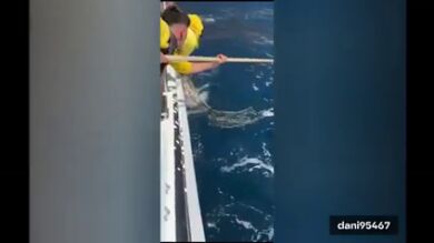 El rescate ha sido grabado y compartido por el usuario de TikTok @dani95467. En las imágenes se observa cómo varios tripulantes de un velero lograron cortar los restos del aparejo que impedían el movimiento del animal.