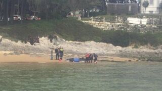 Liberada al mar una ballena de unos cinco metros de longitud en la playa de Bikinis en Santander