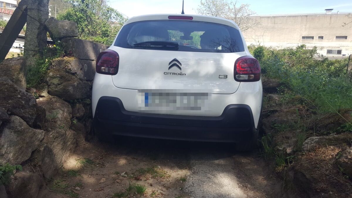 El coche quedó encajonado entre dos muros sin poder avanzar ni retroceder. La Guardia Civil consiguió liberar el vehículo.