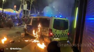 La mujer detenida durante las manifestaciones en defensa de Pablo Hásel en Barcelona, como presunta responsable de quemar un furgón de la Guardia Urbana con un agente en su interior, ha sido puesta en libertad provisional.