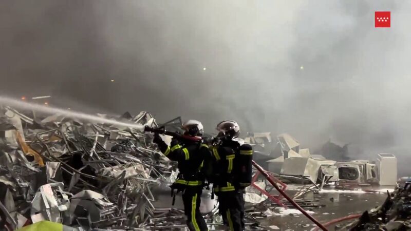 Hace casi dos años, también se produjo otro incendio en la chatarrería de Leganés que estuvo provocado por la acumulación de 10.000 metros de lavadoras. Trabajaron una veintena de dotaciones de los bomberos y tampoco hubieron ni heridos ni intoxicados.