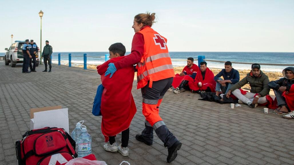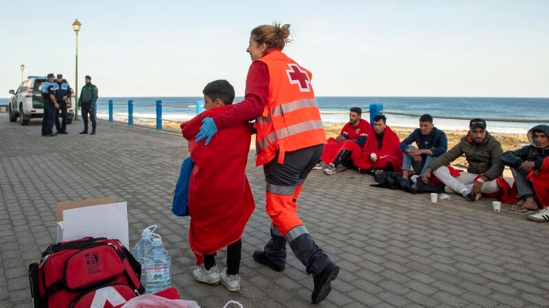 La llegada de cayucos a Canarias continúa sin descanso en este 2024. Solo en el mes de enero se registraron números sin precedentes, llegaron a las islas 7.270 personas. Es una cifra que multiplica por 15 la del mismo periodo del año pasado. En los diez primeros días del mes de febrero, han llegado cerca de 3.000 personas y los servicios de emergencia no dan abasto. Los voluntarios de Cruz Roja son los primeros que atienden a los inmigrantes al tocar tierra, les ayudan a bajar de la salvamar y les reparten mantas.
