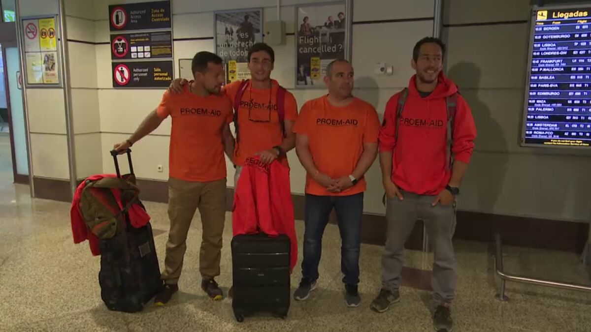 Los bomberos sevillanos juzgados en Lesbos ya se encuentran en España, donde han aterrizado a mediodía en el aeropuerto de Madrid. Los bomberos fueron absueltos este lunes por la justicia griega de un delito de tráfico de personas tras un duro interrogatorio de la Fiscalía.