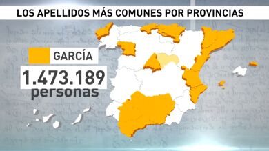 Casi un millón y medio de personas en España se apellidan García, un apellido que prevalece en hasta 33 de las 50 provincias. En segundo lugar y cerca del millón se encuentra el apellido González, que se concentra, sobre todo, en las Islas Canarias, seguido de los Rodríguez.