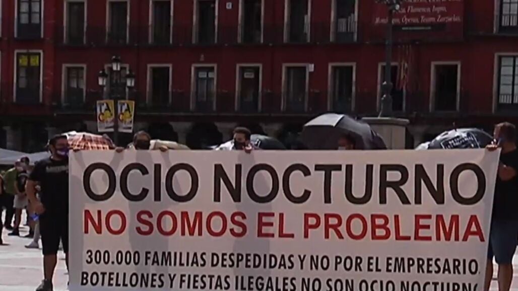 Los dueños de locales de ocio se han manifestado en Valladolid para reclamar ayudas de la administración para compensar los cierres y las restricciones de horario.