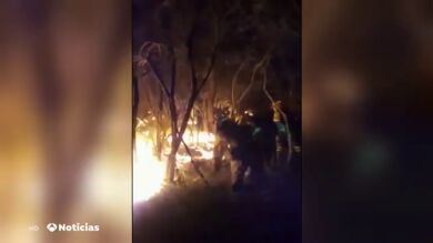 Los bomberos tratan de sofocar el incendio que se declaró este miércoles en Cualedro, Ourense, que continúa descontrolado. Se han quemado ya unas 1.000 hectáreas y algunos vecinos de Monterrei han tenido que ser desalojados.