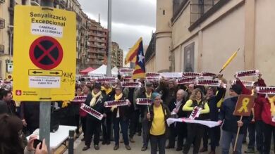 Los participantes, ataviados con carteles de "presos políticos", dan vueltas, por turnos, al perímetro de lo que hasta hace unos meses era la cárcel de la Modelo de Barcelona, que cerró sus puertas el pasado junio.
