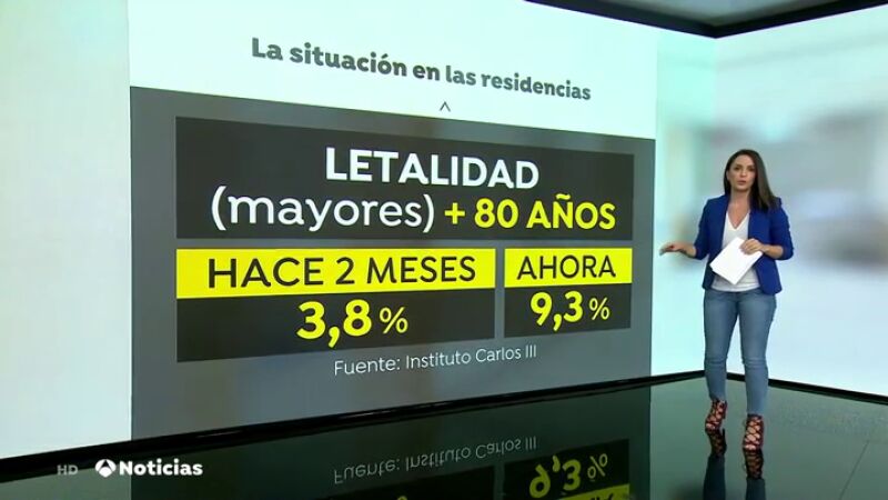 En la última semana se han detectado 134 brotes en residencias con 2.326 casos. Un 27% más que la anterior y según datos del Instituto Carlos III la letalidad del virus en mayores de 80 años ha pasado del 3,8%, hace dos meses, al 9,3%, ahora.
