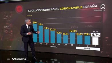 El número de contagios aumenta, pero crece al menor ritmo desde que empezó esta crisis: al 6,7% diario. Esto hace pensar que está funcionando la cuarentena.