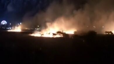 Los fuegos artificiales del comienzo de las fiestas en Cáceres provocaron un incendio en el recinto ferial