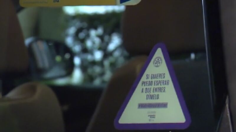 Esta iniciativa va destinada principalmente a las mujeres. Desde hace una semana más de 6.000 taxis madrileños incorporan una pegatina en la que podemos leer "Si quieres puedo esperar a que entres. Dímelo".