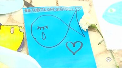 Pegado al mar, en el pez más grande de Almería, se lanza una muestra más de cariño. Los vecinos han impregnado la escultura con carteles de 'pescaítos' e imágenes de recuerdo a Gabriel Cruz. Dibujos de peces nadando, peces tristes con lágrimas alrededor.