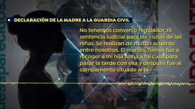 La madre de Anna y Olivia relató a la Guardia Civil qué ocurre en las horas previas a la desaparición de las niñas y también después. Los padres de las pequeñas no tenían convenio regulador ni sentencia. "Se realizan de mutuo acuerdo entre nosotros". El pasado martes, Tomás fue a recoger a casa de Beatriz a la hija pequeña Anna y después se acercó al campamento situado al lado del colegio de la mayor, Olivia, a recogerla. En el testimonio Beatriz Zimmerman ante la Guardia Civil contabiliza 3 llamadas telefónicas con su expareja.