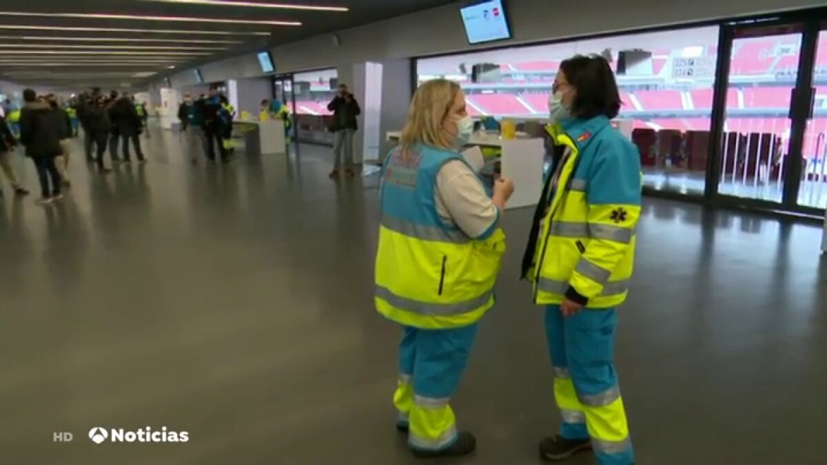 El estadio Wanda Metropolitano alberga las vacunaciones del coronavirus para los policías, bomberos y protección civil. Este estadio estará convertido de lunes a domingo durante todo el día en un centro de vacunación del coronavirus, al que la comunidad irá citando a personas para que acudan al lugar.