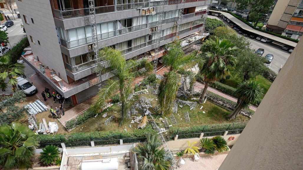 Las primeras informaciones apuntan a que el derrumbe de Benidorm se produjo cuando los trabajos en la obra ya habían finalizado y se estaba llevando a cabo el levantamiento de la estructura del andamio en vertical. Por causas que aún se investigan, la instalación cedió, provocando la caída de los operarios.