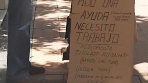 La crisis económica producida por la pandemia de coronavirus ha provocado que miles de personas pierdan su trabajo y tengan que buscarse la vida para conseguir un puesto. Es el caso de Manuel, un electricista en paro que salió a la calle con un cartel para darse otra oportunidad.