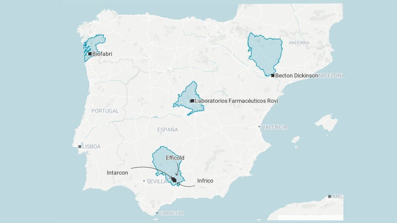 El mapa de la fabricación de la vacuna contra el coronavirus en España