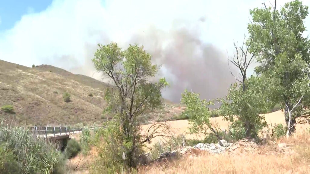 La localidad de Moros ha sido desalojada por el avance de las llamas del incendio en Ateca (Aragón).