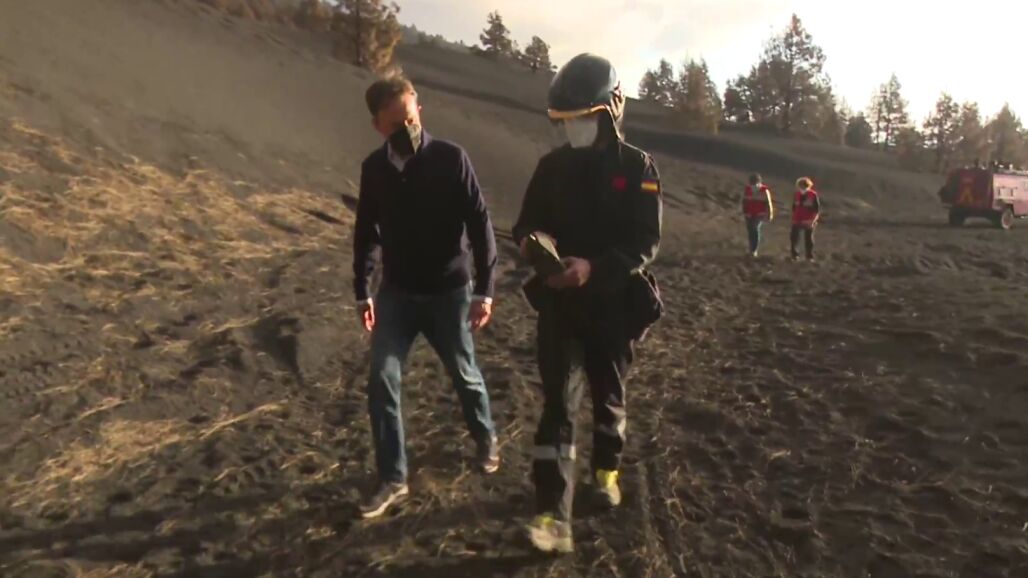 Matías Prats ha recorrido una zona en la que las casas están sepultadas por la ceniza del volcán de La Palma. Además, ha acompañado a los técnicos que se encargan de la medición de gases.