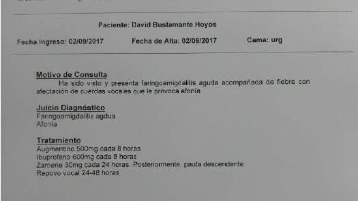 Un médico atiende a David Bustamante fuera del horario laboral