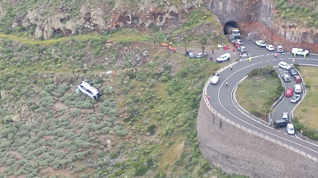 El siniestro se ha producido en torno a las 13:15 horas, cuando el vehículo, una guagua turística, ha perdido la trayectoria por causas que todavía se investigan y ha terminado precipitándose por una ladera, donde ha quedado volcado.