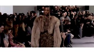 Para las prendas exteriores, dominó asimismo la piel de zorro, que se llevó tanto en largos y voluminosos chalecos en negro y gris, chaquetas cortas en camel, o chaquetones hasta la rodilla en rosa oscuro.