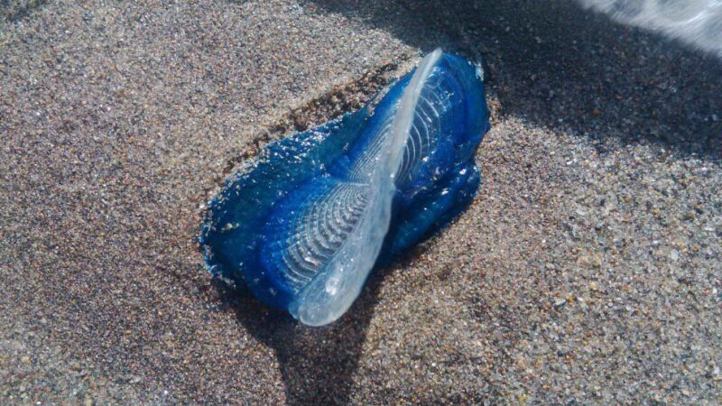 Hace unas semanas aparecieron miles de medusas velero en las playas de la Costa Brava tras una semana de fuerte oleaje y abundantes precipitaciones en Cataluña. Se trata de un tipo de medusa que frecuentemente llega a las playas en primavera, y su llegada es notable por el gran número de ejemplares que se concentran en las costas. Son una especie inofensiva para las personas, y su aspecto se caracteriza por el color azul y por la lámina en forma de vela que las hace sobresalir del agua.