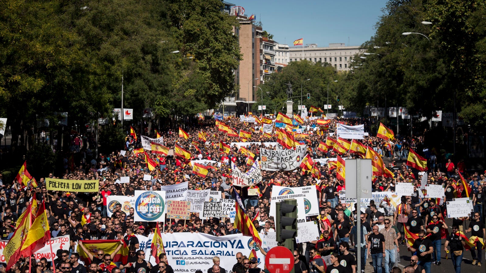 Unas 30.000 personas se han manifestado en la Puerta del Sol de Madrid para reivindicar una equiparación salarian entre las Fuerzas y Cuerpos de Seguridad del Estado pues calculan que la diferencia oscila entre los 400 y los 1.000 euros.