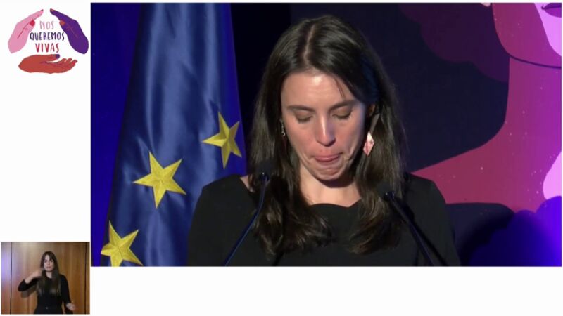 La ministra de Igualdad, Irene Montero, ha roto a llorar durante un acto oficial en el Día Internacional de la Eliminación de la Violencia contra la Mujer.