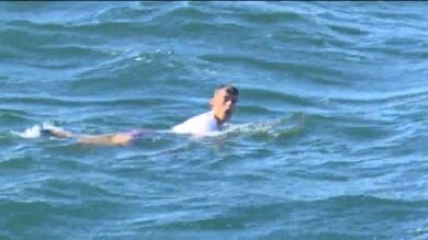 El momento en el que un joven trata de llegar a nado al puerto de Ceuta para colarse en un barco a la Península