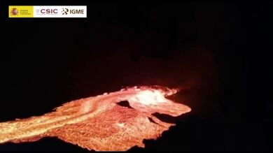Durante esta noche, de nuevo, se han vuelto a producir momentos de gran emisión de magma en el volcán de La Palma que desbordan por momentos las coladas: son los llamados 'tsunamis de lava'. Además, los geólogos han grabado el momento en el que se rompía la pared de un canal de lava en Tacande.