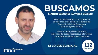 Los Mossos d'Esquadra han pedido este miércoles, a través de Twitter, colaboración ciudadana para encontrar a Martín Ezequiel Álvarez Giaccio "como persona relacionada con la muerte de su hijo en Barcelona". De esta forma, la policía catalana ha pedido a la ciudadanía llamar al 112 si se tiene algún tipo de información relacionada con el crimen.