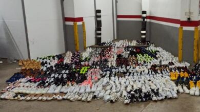 Los agentes contabilizaron 408 pares de zapatillas. El conductor no pudo justificar su procedencia y éstas se decomisaron añadiendo el delito contra la propiedad al de la seguridad del tráfico.