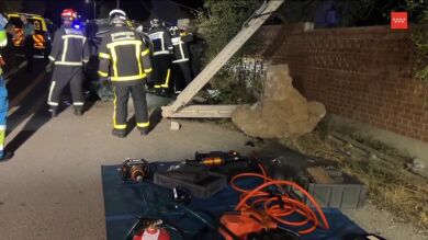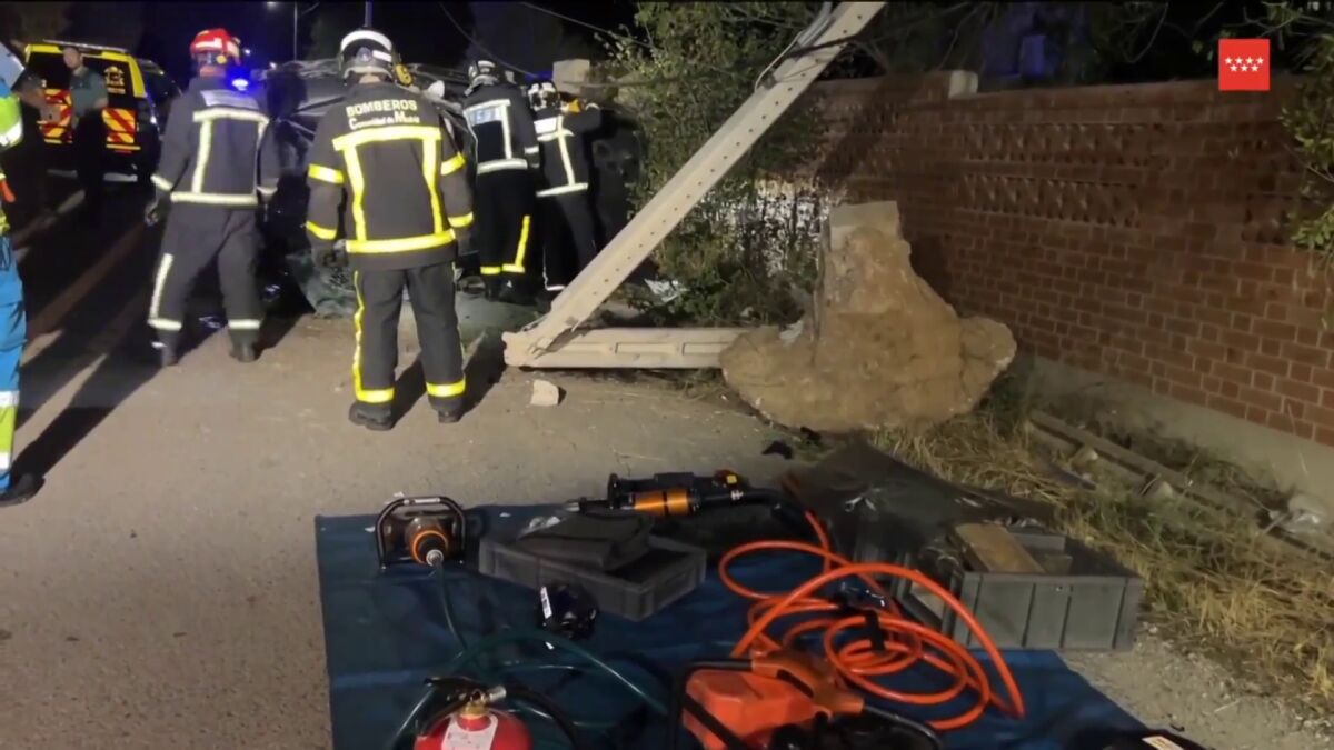 Muere un hombre de 62 años después de que su coche se estrellara contra una base de hormigón del alumbrado público en Mejorada del Campo. Los servicios de emergencia no pudieron hacer nada por él.