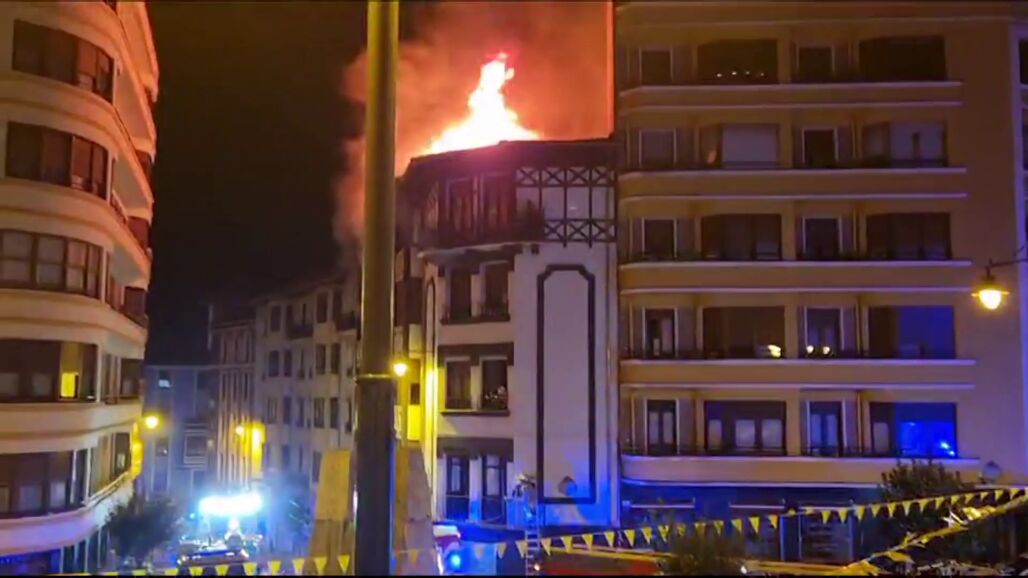 Las llamas arrasaron en cuestión de minutos la tercera y cuarta planta de este bloque de viviendas. Un edificio histórico que sigue conservando su estructura de madera. Precisamente es este detalle el que ha provocado la propagación del fuego por todas las zonas comunes. "La escalera ha colapsado completamente, está totalmente carbonizada. No hay escalera, solamente hay un hueco", explica Ibon Bijueska, jefe de guardia de bomberos.