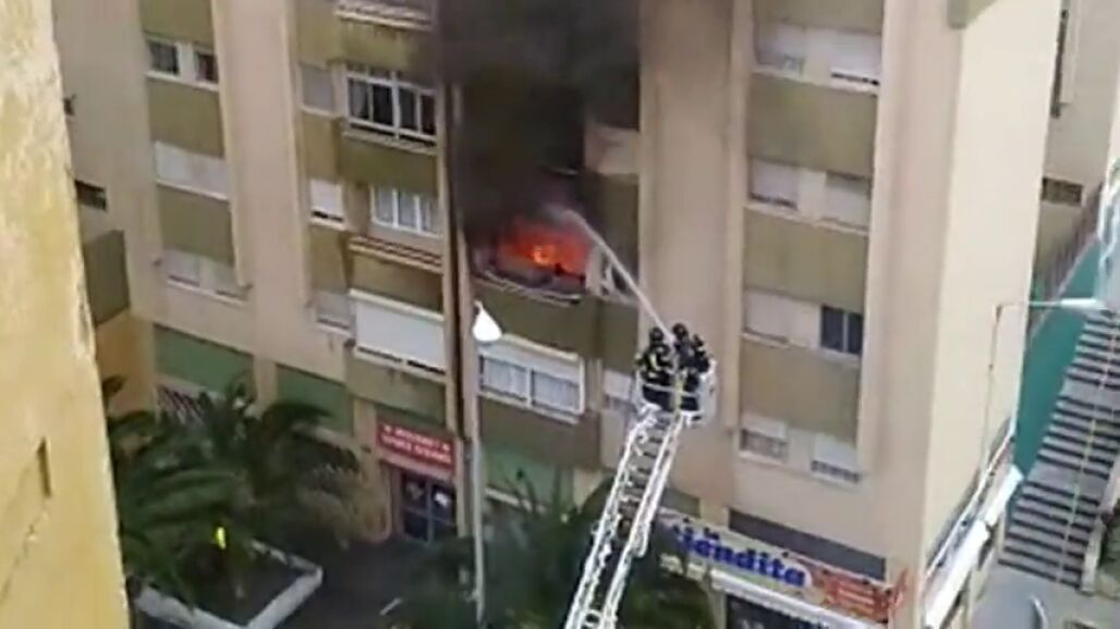 El incendio se declaró a mediodía en el segundo piso de un edificio de viviendas situado en la calle Diego Betancor Suárez, en el Barrio de la Feria.
