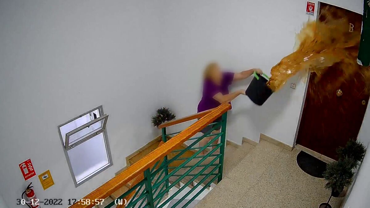Tal es el temor de estos vecinos que incluso han puesto cámaras en el rellano para poder probar los hechos. Su vecina –tal y como se puede ver en los vídeos que los propios vecinos han grabado y nos han cedido- les lanza cubos con excrementos a las puertas, otras veces les echa lejía y otra serie de productos corrosivos.