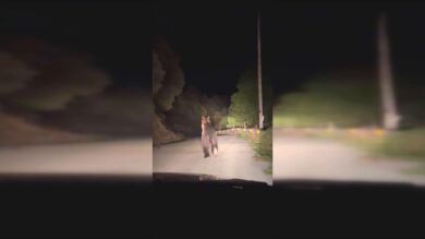 Una pareja de osos es sorprendida en mitad de la localidad de Frama. En el vídeo grabado por Manuel Relea se ve a uno de ellos correr frente a su coche. El joven nos comenta que el plantígrado subió hacia arriba y se metió por las callejuelas de la localidad cántabra.