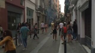 Aprovechando las horas permitidas para el paseo, muchos jóvenes han convertido algunas calles del centro de Barcelona en auténticos botellones, algo que obviamente no está permitido. Se han producido ya varias aglomeraciones de jóvenes, que con bebida en la mano y música de fondo, bailan o hablan con los amigos sin respetar tampoco las distancias de seguridad.