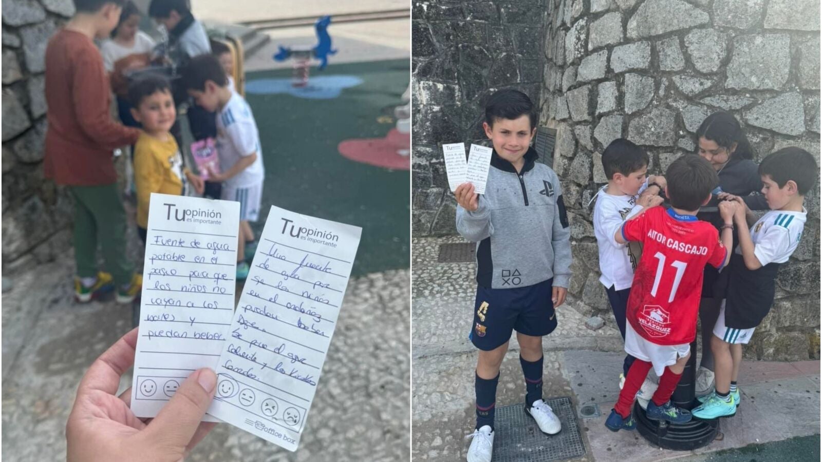 Cansado tanto él como sus amigos de tener que ir a pedir agua a los bares, el pequeño dejó una solicitud en el buzón de sugerencias de este municipio de la sierra de Huelva. Su sugerencia fue: "una fuente de agua potable en el paseo para que los niños puedan beber y no tengan que ir a los bares a pedir un vaso de agua".