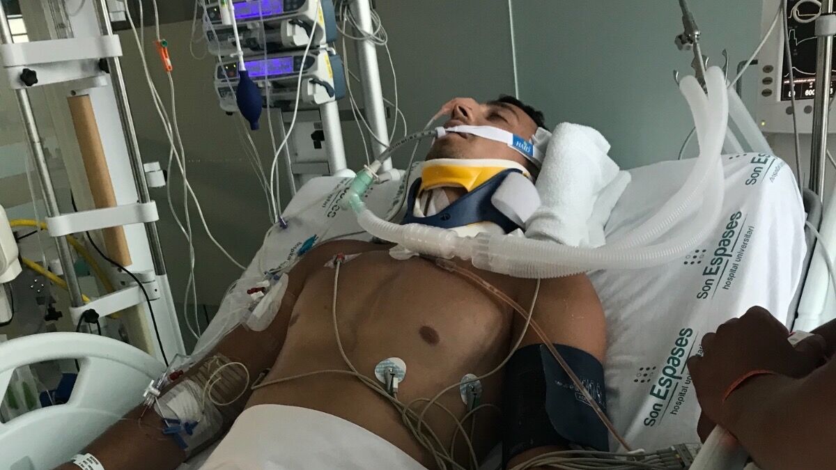 "Respira a través de un tubo, ya que sus pulmones están muy débiles y no puede respirar por sí mismo. Puede mover la cabeza y los hombros, pero no puede moverse ni sentir desde el pecho hasta los pies", cuenta la joven en la petición. El hospital Son Espases, en el que está ingresado, no tiene las máquinas necesarias y no puede darle el tratamiento que necesita.