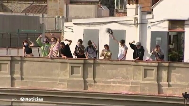 Los Mossos han denunciado que los manifestantes les han lanzado harina, pintura rosa y otros objetos desde la terraza del edificio, lo que ha provocado heridas a diversos agentes.