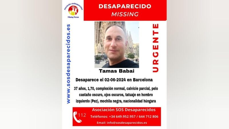 Nueve días sin saber nada de Tamas Babai, el turista húngaro de 37 años que desapareció a principios de junio en Barcelona, la ciudad que estaba visitando desde mediados de mayo, según su familia.